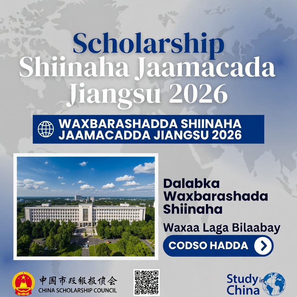 Scholarship Shiinaha Jaamacadda Jiangsu 2026 Codso deeqda Jiangsu University Presidential Scholarship 2026. Fursadan waxay dabooshaa lacagta waxbarashada, hoyga, iyo gunno bille ah. Baro shuruudaha Bachelor, Master, iyo PhD ee jaamacadda Jiangsu.